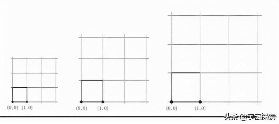 下图为共动作标的示意图,坐标格子随宇宙的膨胀而增大: