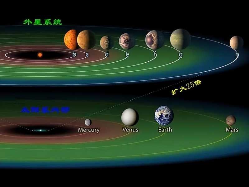TRAPPIST-1系统(外星系统)的所有行星都围绕它们的主恒星运行,其半径完全在围绕太阳的水星轨道半径之内,所有行星都在不到20天的时间内完成围绕主恒星的运行。这意味着它们每年的季节变化发生在这个时间段。