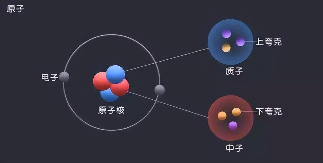 原子由原子核和核外电子构成,原子核由中子和质子构成,中子和质子分别由三个夸克构成。夸克和电子是目前已知的基本粒子,它们不可再分。至于电子和夸克是否还有自己的内部结构,目前还不得而知。