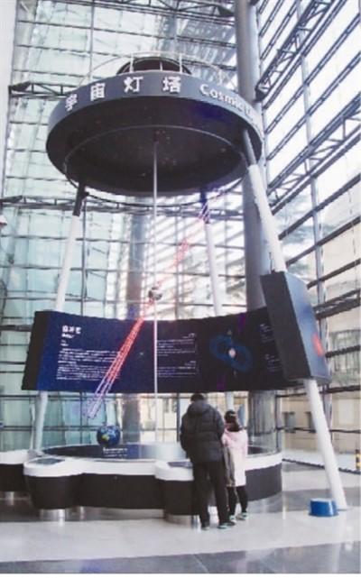 “宇宙灯塔”展区以高大的动态交互模型展示了宇宙中一种典型的致密天体——脉冲星。脉冲星以电磁辐射的形式向宇宙释放能量,射电波束周期性地扫过地球,就像大海中引导船舶航行的灯塔,故有“宇宙灯塔”之称。