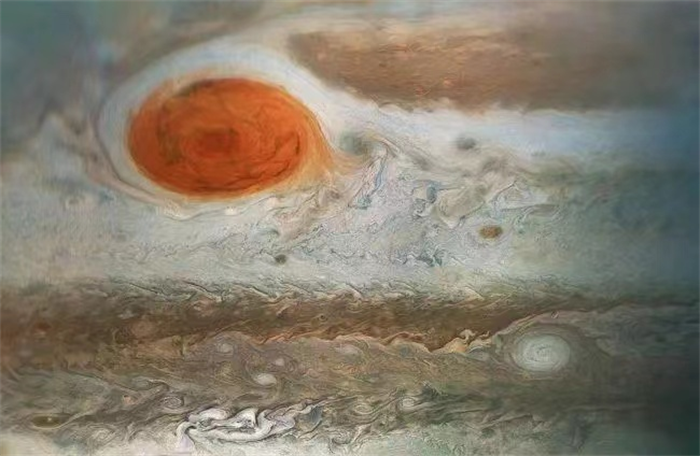 科学家现在对木星的研究,第一次看到了太阳系内最大的风暴。之前他们对大红斑没有深入的了解,认为可能是一个很普通的椭圆形气体,直到后来深入研究才发现,大红斑的结构是非常复杂。大红斑中心气温比较高,因为和外围温度方面的差异,所以让风暴在中心能够以顺时针的方向来旋转,反之外围是逆时针的方向。