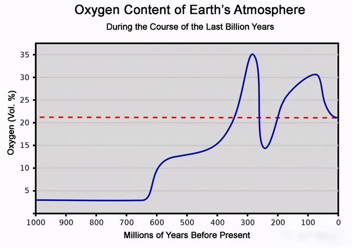 地球的氧气含量并不是固定不变的,一开始地球诞生时,存在的都是厌氧性生物,它们的生存根本不需要氧气的参与。直到后来藻类植物的出现,让大气中的氧气浓度开始不断增加。石炭纪时期的氧气浓度达到最高,之后逐渐下降到了30%左右。新时代时期的氧气含量在21%,这个氧气浓度比较适合人类的生存。