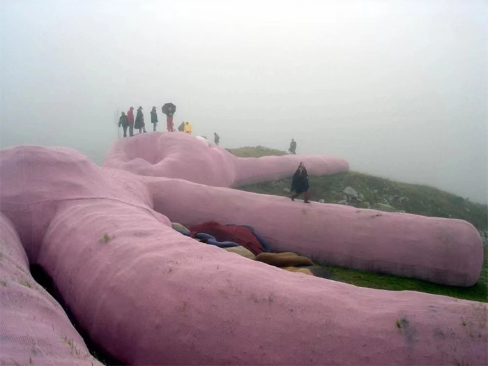 意大利有一只长度在200英尺以上的巨型粉色兔子,人们只有通过卫星来观测,才能看出它是一只兔子的模样。卫星拍摄的照片中,这只兔子看起来是非常可爱的。现在人们看到的兔子已经不够完整,经历了长时期的风雨之后,或多或少已经出现了残破。幸好设计师采用了能够降解的环保材料,在兔子的内部填充了稻草一类的物质。即使多年以后兔子消失,也不会给自然环境带来破坏。