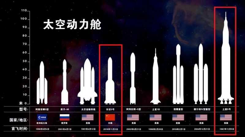 地球升空:阿波罗号从地球上升空时是至今推力都排世界第二的土星五号,火箭总重量3000多吨,荷载45吨,依靠巨大的发射架,场面振奋人心。