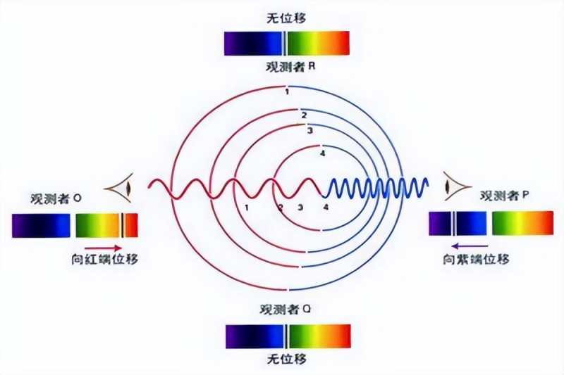说白了,不管是光波还是声波,在飞向我们时,波长都会被拉长。远离我们时,波长会被压缩变短。