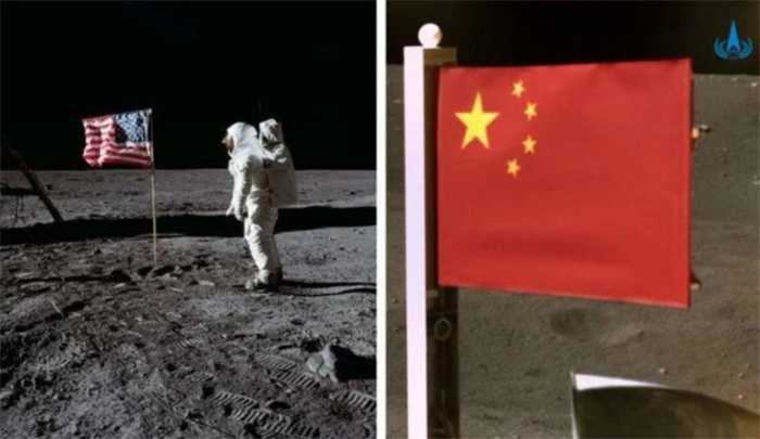 美国的月球国旗看起来像在飘动,是因为月球的环境没有空气阻力,宇航员摇动旗子之后很长时间才能停止。很多人看到月球上的中国五星红旗,对比美国阿波罗登月拍摄的照片,不由的又对美国登月产生了质疑。