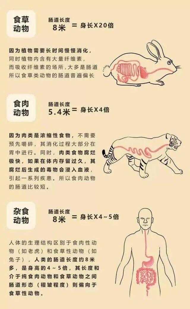 首先是人体的肠道较短,而肠道较短意味着消耗的能量更少,虽然食肉动物的肠道更短,但是食肉动物自身的体型更大,奔跑速度更快,消耗的能量更多。