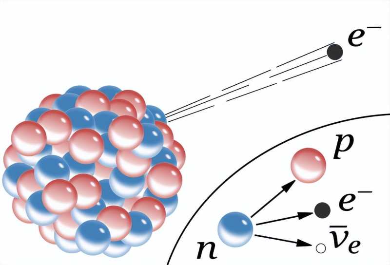 除此之外,原子核还存在着衰变的现象,比如:β衰变,一个中子衰变成一个质子、一个电子和一个中微子。