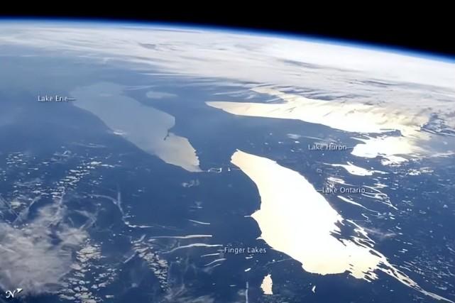 比如说下面两张图分别是白天看到的美国五大湖样貌,晚上的地球城市灯光。