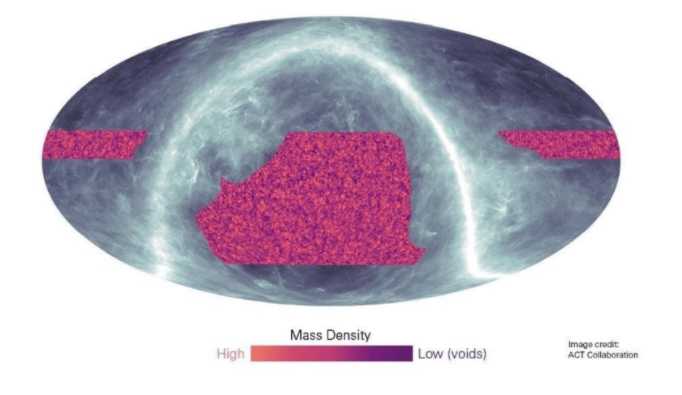 阿塔卡马宇宙学望远镜主任、普林斯顿物理学家苏珊娜·斯塔格斯(Suzanne Staggs)在大学发布会上说:“这有点像剪影,但剪影中不只是黑色,而是有纹理和暗物质块,就好像光穿过一块有很多结和疙瘩的织物窗帘。”