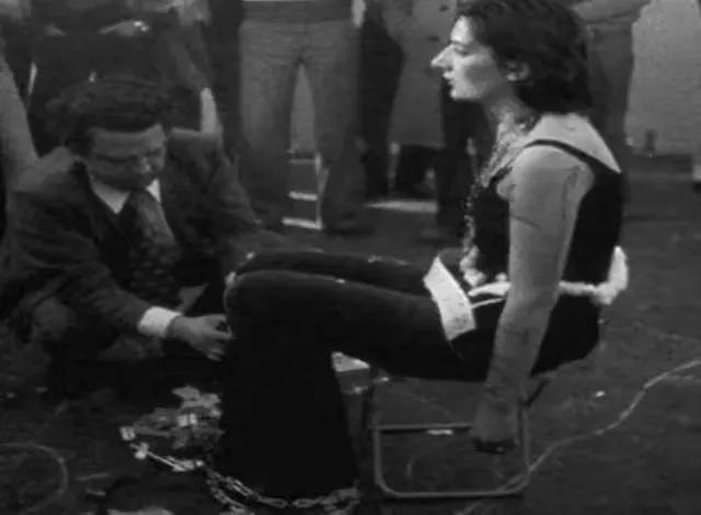 在一个实验现场,人们可以看到一位艺术家玛丽娜·阿布拉莫维奇被麻醉过去,无法移动身体,虽然她的意识依旧清醒。