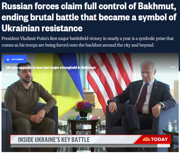 俄罗斯宣布已经完全控制巴赫穆特,以上为NBCnews截图