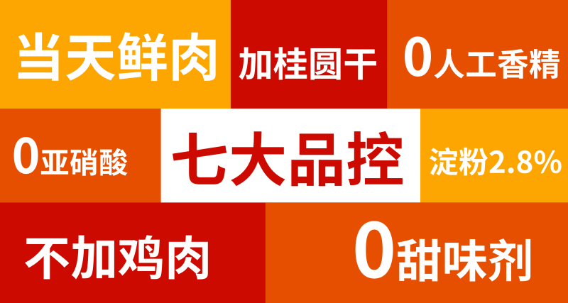 我们严选新鲜肉源,坚持干净配料,钻研香肠工艺,一根香肠我们做了5年!终于推出了鲜肉工艺的第三代香肠——鲜肉肠。我们用的都是当天屠宰当天送达工厂的新鲜猪后腿肉,绝不添加鸡肉,吃香肠就要吃纯肉的!用新鲜桂圆干代替甜蜜素,绝不添加亚硝酸盐、防腐剂、人工色素香精,入口的东西就要够安心。