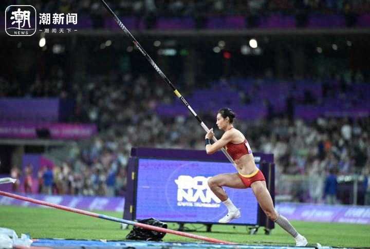 杭州亚运会田径女子撑竿跳高决赛,浙江名将李玲夺冠并打破亚运会纪录。潮新闻记者 董旭明 李震宇 俞碧寅/摄
