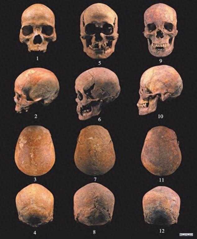 周原齐家村东墓地1999年出土人骨:1-4. 99ZIA1M49(男);5-8. 99ZIA1M39(男);9-12. 99ZIA1M43(女)