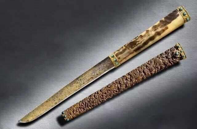 这把刀看起来非常高贵,使用的材料非常珍贵,比如刀柄是用羚羊角制作的,这在刀剑中非常罕见。此外,刀鞘还镶嵌有宝石、珊瑚和绿松石,刀身则是黄金打造。在2009年的拍卖中,这把刀以124万美元的价格被拍出。