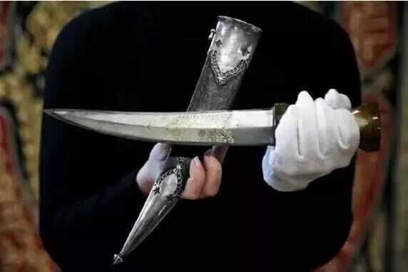 这又是一件印度的国家级的珍品,它是莫奈尔皇室沙贾汗皇帝的御用刀,并且这把刀更加特殊,即从沙贾汗出生时就陪伴着他一直到死去,所以这上面有记载着沙贾汗的生死日期。这把刀可以看出非常的精美,加上每一次的拍卖,使得这把刀的价格不断抬高,在第五次交易的时候,拍出了330万美元的高价。