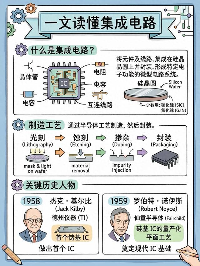 打个比方:早期的电子设备像“搭积木”,需要手动焊接大量元件和导线,体积庞大、可靠性差;而集成电路就像“预制板建房”,把所有元件和线路提前“浇筑”在同一块硅片上,不仅体积缩小到原来的百万分之一,性能和可靠性也实现了质的飞跃。