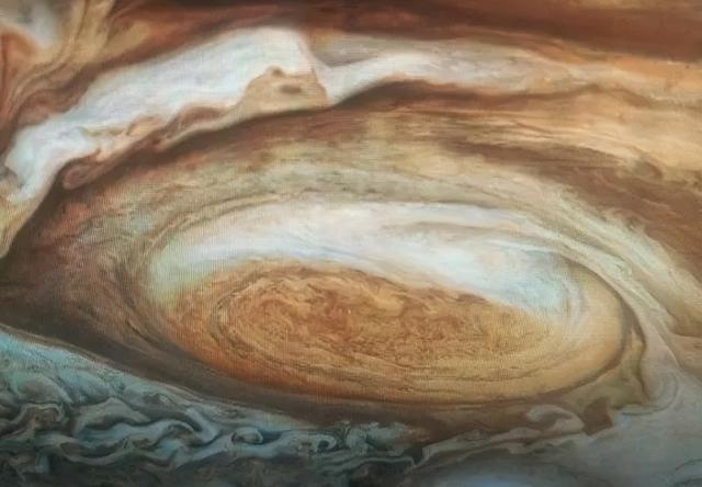 比如木星的大气,主要由氢气和氦气组成,还有少量的甲烷、氨气等气体,其表面的大气流动非常剧烈,形成了著名的“大红斑”——一场持续了350年的风暴,风速高达50级,比地球上最强烈的台风还要猛烈几十倍。这个大红斑的长度约25000千米,上下跨度约12000千米,足以轻松装下几个地球,这样恶劣的大气环境,根本不可能孕育生命。