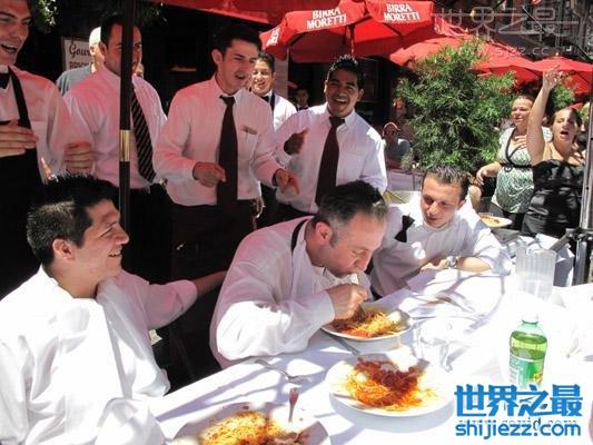 在意大利的一次吃意大利面比赛中,一名餐厅员工迈克(Mike Spqr)以吃下3磅意大利面夺得冠军,并获得250元奖金和奖杯一座。有的吃还有的赚哦!还等什么呢?