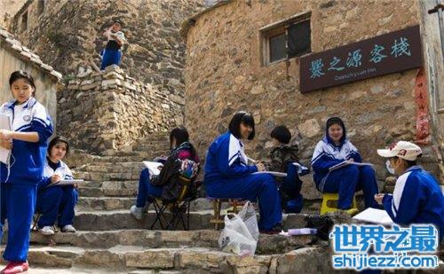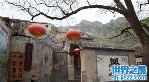 爨底下村,该村位于北京市门头沟区斋堂镇,是一座始建于明朝的古村落,距今已有400多年历史,现保存着500间70余套明清时代的四合院民居,是我国首次发现保留比较完整的山村古建筑群。距京90公里,海拔650米,村域面积5.3平方公里。