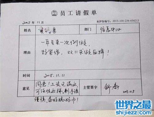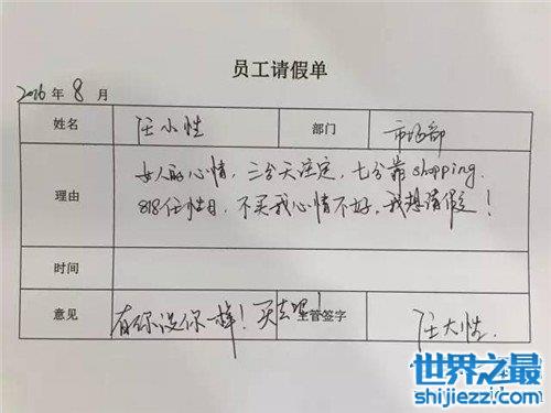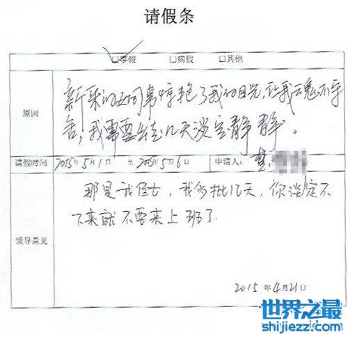 现在的年轻的上班族对于请假理由真的是任性的让人大吃一惊。小明是世界杯的铁杆粉丝,世界杯来了他就要请假,请假理由就是世界杯后我带着冠军奖杯回来上班,公司会更赚钱。真让人哭笑不得。作为一个由职业操守的职场人,对于请假还是要把握一定的尺度,尽量正当一些的请假理由,让领导和同事都好接受,以便请假后回来更快的融入到工作中。