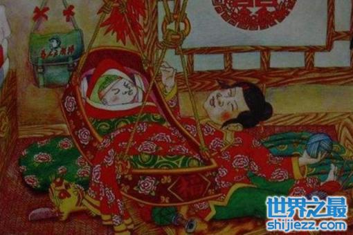 这个是很特别,其实不是真的把孩子吊起来,而是把孩子的摇篮吊起来。这是之前的游牧民族想到的办法,因为他们经常迁移游牧,为了孩子的安全就把孩子的摇篮吊到马车上,这样照顾起来方便。后来变成了一个特色,在屋子里也把孩子的摇篮吊到梁上,既节省空间,又能在孩子哭闹的时候当做可以推的秋千摇篮。