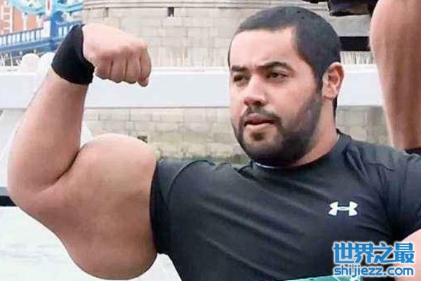 现在很多人喜欢健身,希望能练就一身完美的肌肉,向别人展示下自己的肱二头肌,那你知道世界上最大的肱二头肌有多大吗?美国马萨诸塞州24岁埃及裔男子穆斯塔法·伊斯梅尔拥有世界上最大的手臂肱二头肌,他的上臂周长(臂围)竟有79厘米,几乎和一个成人的腰围一般粗,被人称做真人版“大力水手”的伊斯梅尔也因此一举跻身2013年版的《吉尼斯世界纪录》。