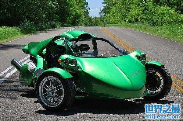 世界上最奇葩的车之一T-Rex三轮车,这辆车子由Campagna公司打造的,跑起来速度惊人甚至比正宗的跑车更快,算是世界上最快的三轮车了。