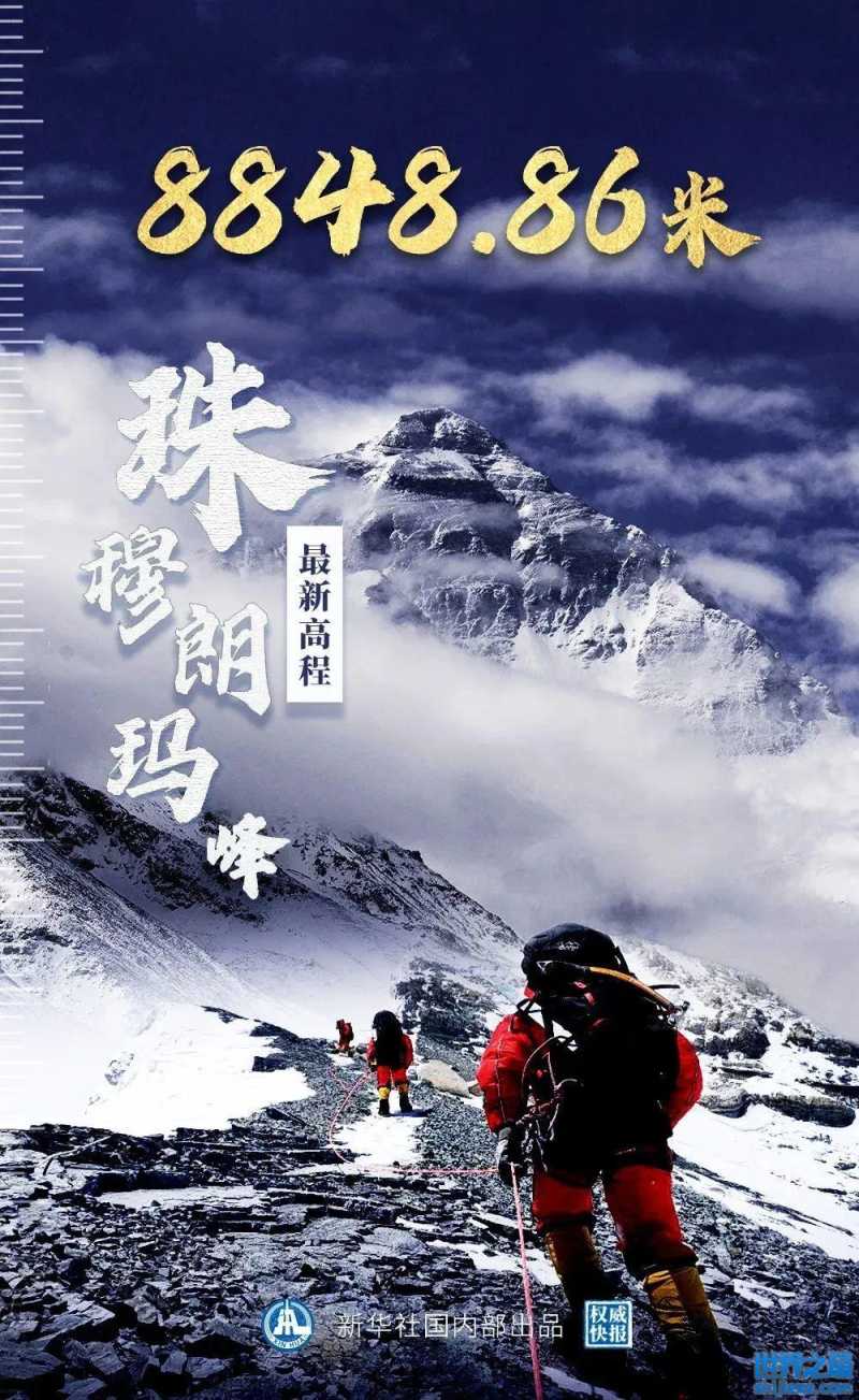 珠穆朗玛峰是地球的最高处,它的最新高程是8848.86米,是全世界户外运动爱好者登山冒险的象征。
