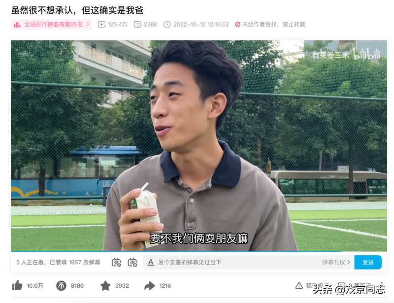 和长辈的代际关系,UP主@自来卷三木有更深的洞察。在视频“虽然很不想承认,但这确实是我爸”中,他通过一次和父亲的足球运动经历,重新认识了世界杯比赛,也第一次了解了父母相识相爱的契机。他还用“亲戚把在B站做视频理解成在食品厂加工食品”这样的错位理解,展现上一代与这一代的差异。他的搞怪扮演,让家乡的亲人形象立体,他的川普,也成了屏幕外的粉丝了解四川人的窗口。