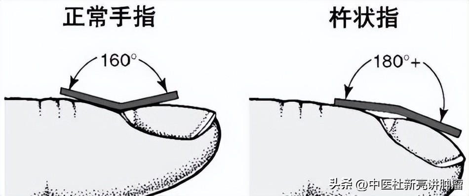 方法很简单,那就是通过观察我们的大拇指是否变形。如果出现图中这种杵状指或者拇指末节肥大,根部缩小,按压后指肚回弹速度慢的情况,说明您的肺部可能出现了比较严重的病变。