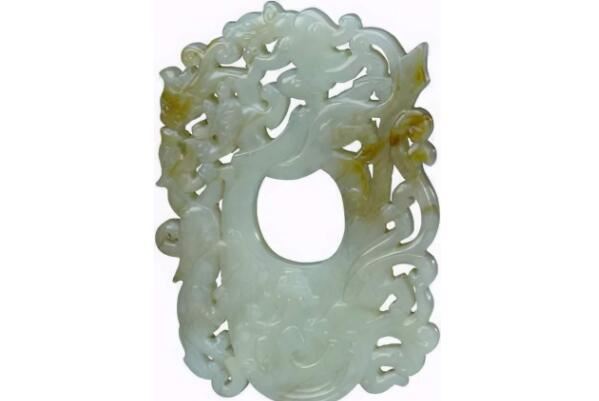 这个白色带黄褐色沁的扁平状玉佩高8.05厘米,宽5.8厘米,目前被收藏在故宫博物馆中,而这个镂雕有飞虎、螭龙、熊纹等纹饰的玉佩,曾盛行在汉代,在宋代至清代时期开始仿制,是宋代仿古玉器中的精品之作。