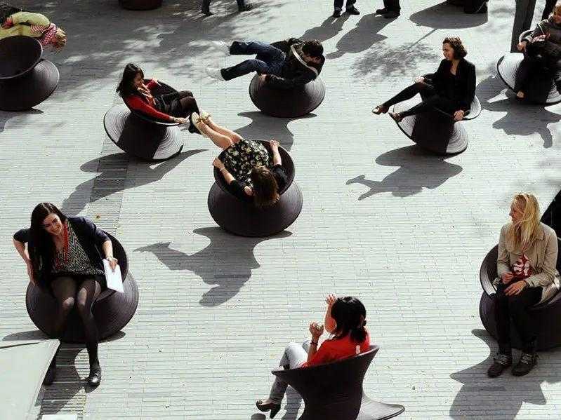图1 / 可以360°全方位旋转,怎么转都不会倒的Spun Chair已经被摆进世界各地的商场 / ©Heatherwick Studio