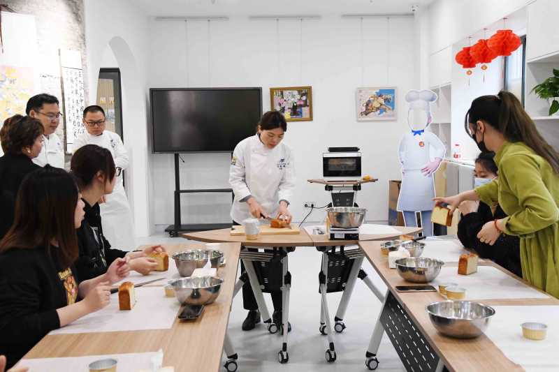 乐斯福(中国)燕子培训中心经理王莉专业从事烘焙多年,去年被徐汇区总工会授予了“徐汇工匠”的称号。她的工匠创新工作室在现场正式启动,她也在当天开启了工作室的第一场烘焙课堂。