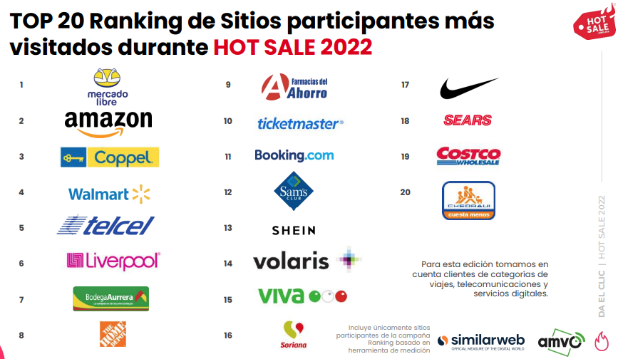 数据来源:similarweb,HOT SALE 2022期间访问量最大的TOP 20排名