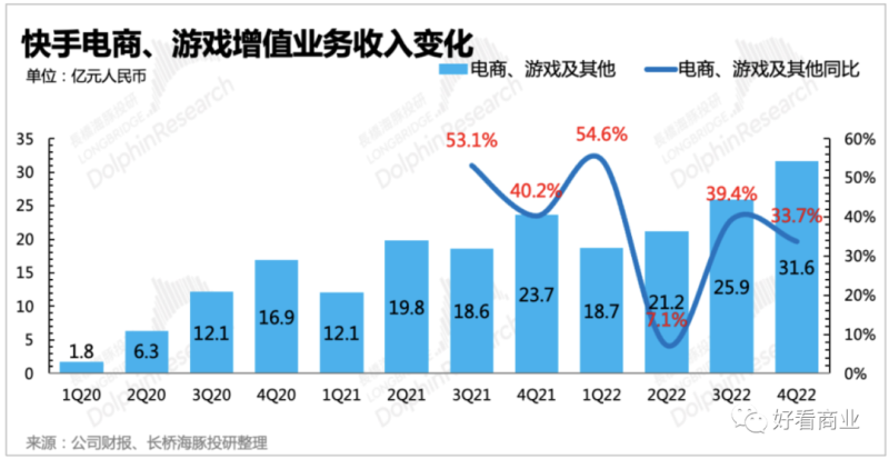 2022年Q4,在全国新冠感染高峰期,快手电商实现营收31.6亿元,同比增长33.7%。Q4直播电商GMV 达3124亿元,同比增长30%。