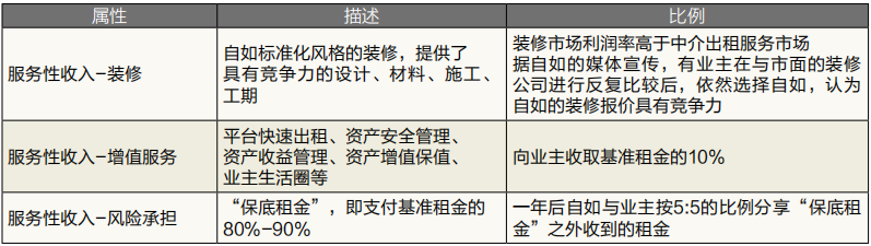 而业主出钱装修,则业主获得的是资产收益(房产+装修),自如获得的是服务收益(装修服务+数据预测+营销+管理)。