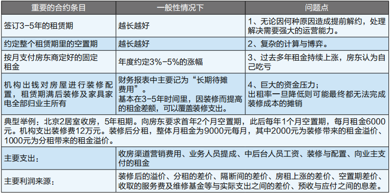 “装修”的加入,业主方要面对付款条件的变化(无押金、月付)、空置期的谈判博弈。随着竞争的加剧,这些元素不断组合,成为不同机构收房与业主的谈判条件。