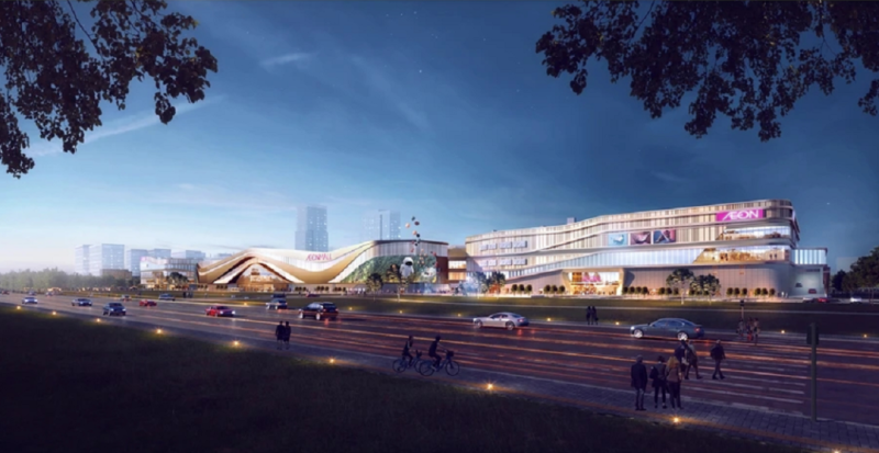 项目位于江夏商业主轴文化大道与四环线交汇处西南角,总投资约100亿元,总建筑面积约65万方。整个商场分为A、B两个馆区,其中A馆为永旺梦乐城购物中心,建筑面积约190789平方米;