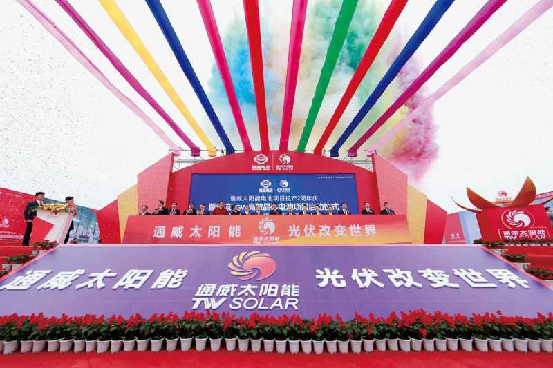 2015年11月18日,通威举行太阳能电池项目投产2周年庆暨双流5GW高效晶硅电池项目启动仪式