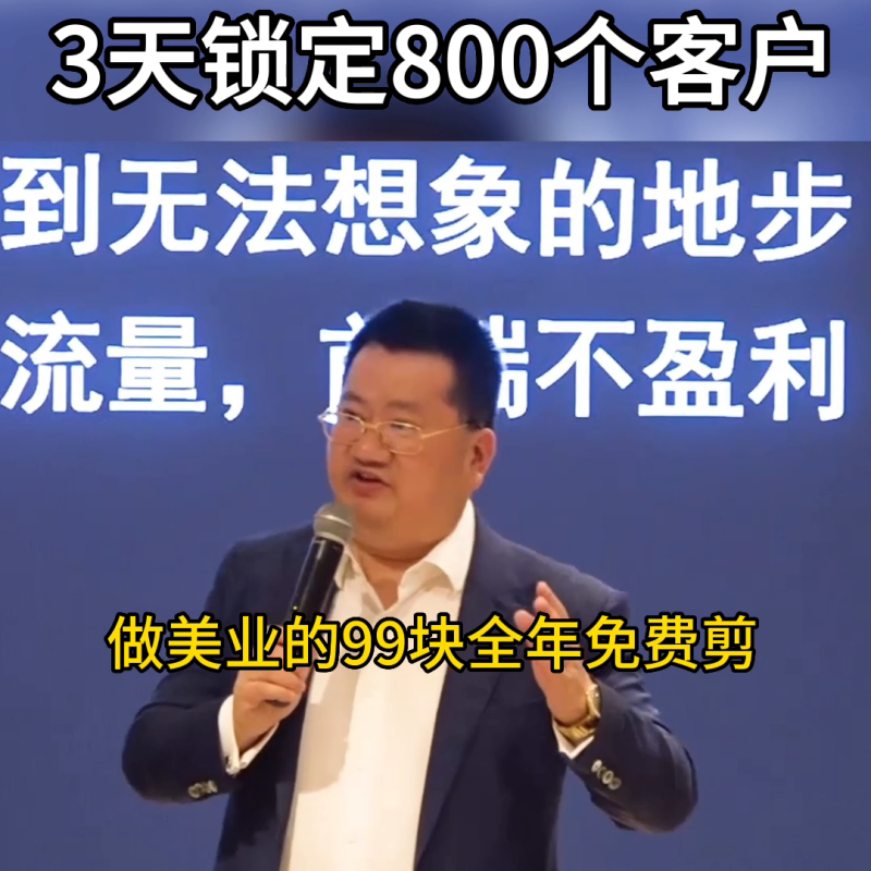 商业设计最牛逼的就是,我一开始让你占我的小便宜,然后我才有机会占你的大便宜。你敢占我的小便宜,我就有机命点的大便宜。所以你只按照这个来讲,你看我的学生开始99块剪头发对吧?