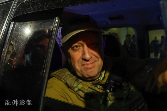 当地时间6月24日,俄罗斯顿河畔罗斯托夫,瓦格纳集团负责人普里戈任从俄罗斯南部军区司令部撤离。图自澎湃影像