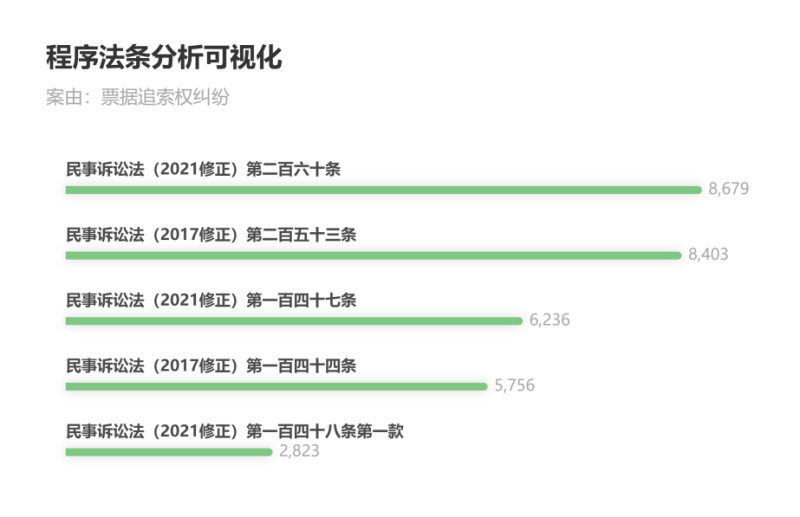 票据追索权纠纷案件司法文书中,法官引用频次最多的程序法条为《民事诉讼法(2021修正)》第二百六十条⁴,即修正前的《民事诉讼法(2017修正)》第二百五十三条,关于司法文书生效后被执行人逾期履行义务的责任的规定;引用频次第二多的程序法条为《民事诉讼法(2021修正)》第一百四十七条⁵,即修正前的《民事诉讼法(2017修正)》第一百四十四条,关于缺席判决的规定,该条说明票据追索权纠纷案件的被告缺席审理的情况极为普遍。