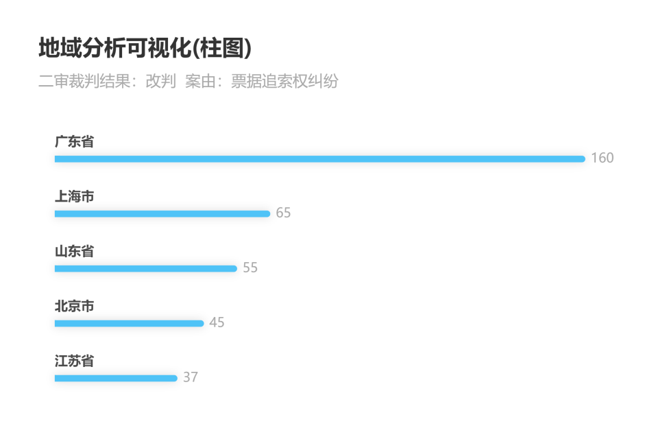 经进一步检索我们会发现二审改判的票据追索权纠纷案件也主要集中在广东地区。