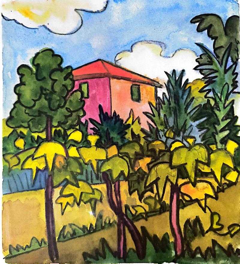 黑塞水彩画《提契诺的房子和葡萄藤》