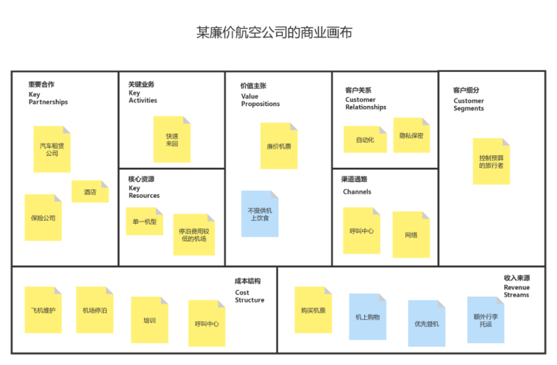 这个廉价航空公司的价值主张很明确,就是为控制预算成功的旅行者提供廉价机票,汽车租赁公司、酒店和保险公司使他们的重要合作伙伴,他们主要通过售票、机上购物、额外托运行李等服务获得收入,只要能cover住飞机维修、机场停泊、培训等费用,就是实现良好的商业运行。