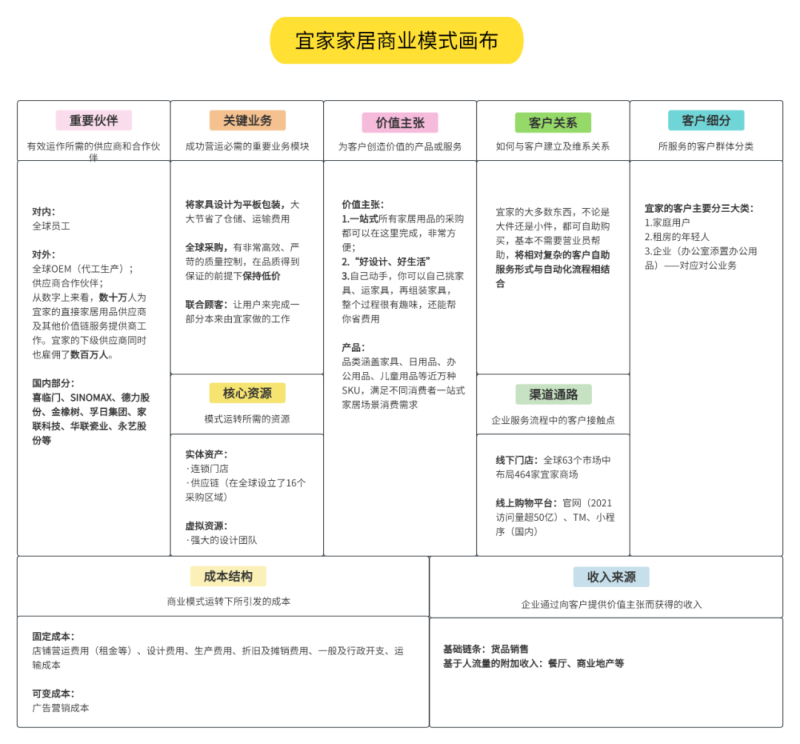 很多人爱逛宜家,有人喜欢它的样板间,有人喜欢一站式在它那里买齐所有家具,有人喜欢它的产品设计和优惠的价格,更有人喜欢它的购物体验。宜家从众多家居品牌中脱颖而出的关键因素都在这张图里了。