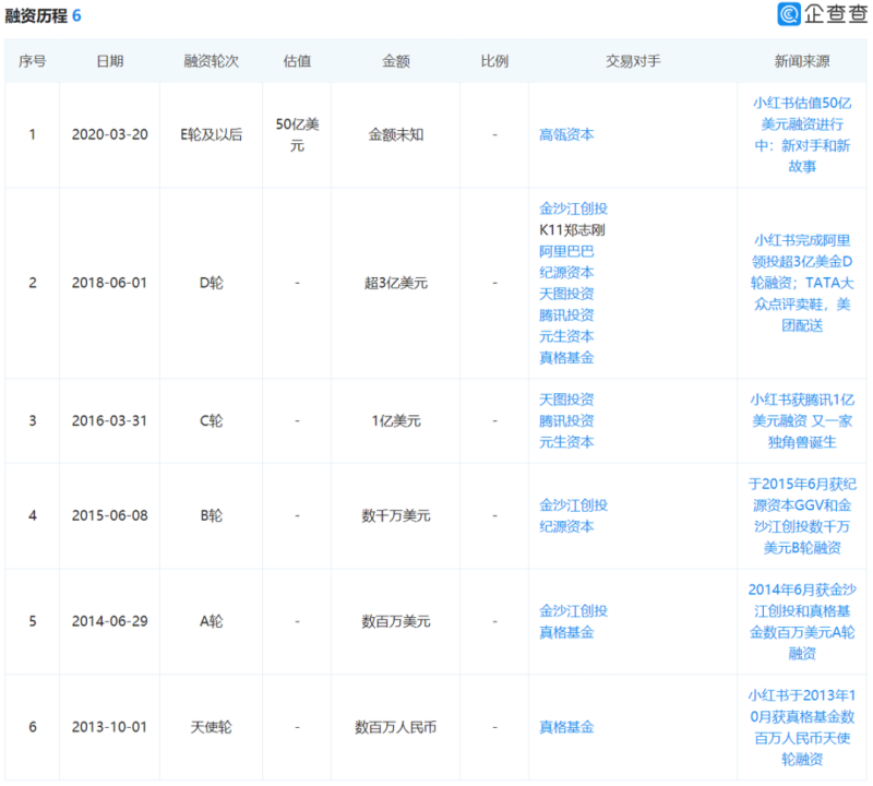 压力首先来自投资人。2013年,毛文超、瞿芳创立小红书,当年就获得了真格基金的数百万元天使轮投资。此后,小红书又经历了5轮融资,最新一轮融资是2021年,获得由淡马锡和腾讯领投,阿里、天图投资、元生资本等老股东跟投的5亿美元融资,投后估值高达200亿美元。这是小红书的高光时刻。