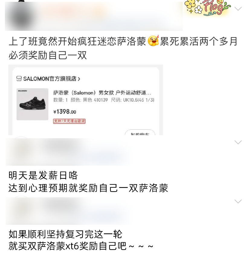 拥有一双萨洛蒙,就拥有了进入潮圈的门票。 没买萨洛蒙的,则在网上凭空建起一座萨洛蒙许愿池。因为对于年轻人来说,淘到一双未遭受溢价风波侵袭的千元萨洛蒙,是一种生活期待,拥有一双萨洛蒙,是对自己阶段性胜利的某种自我奖励。